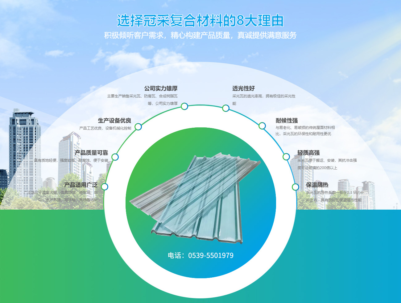臨沂市冠采復(fù)合材料有限公司位于羅莊區(qū)沂堂工業(yè)園,本廠(chǎng)現(xiàn)引進(jìn)國(guó)外全套FRP透明采光板連續(xù)生產(chǎn)設(shè)備,全程電腦操控具有連續(xù)成型,無(wú)限延長(zhǎng),隨意著色,綠色環(huán)保等特點(diǎn)。
